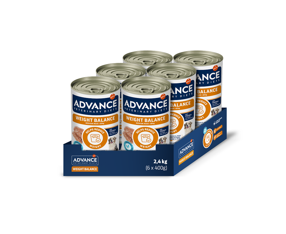 | ADVANCE VETERINARY DIET DOG Weight Balance Med/Maxi 400g ir pilnvērtīga, sabalansēta mitrā diētiskā barība,
