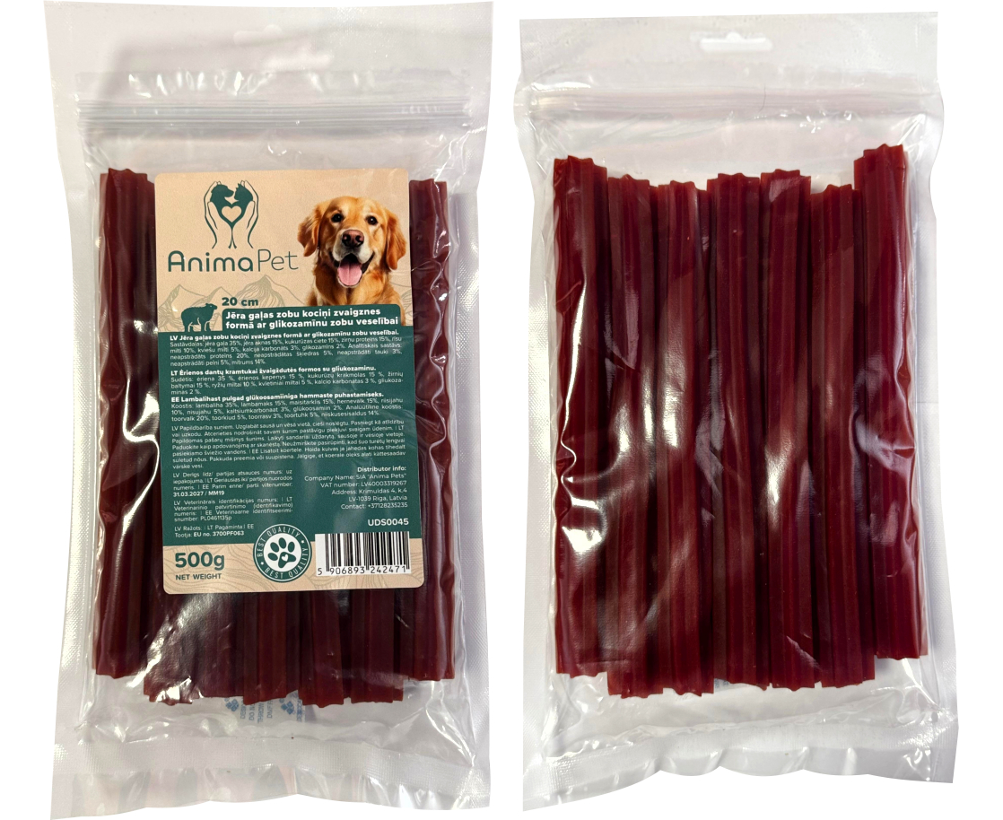 | AnimaPet Jēra gaļas zobu kociņi ar glikozamīnu 20cm, 500 g - papildbarība suņiem, zobu attīrošie kociņi ar jēra gaļu un glikozamīnu.