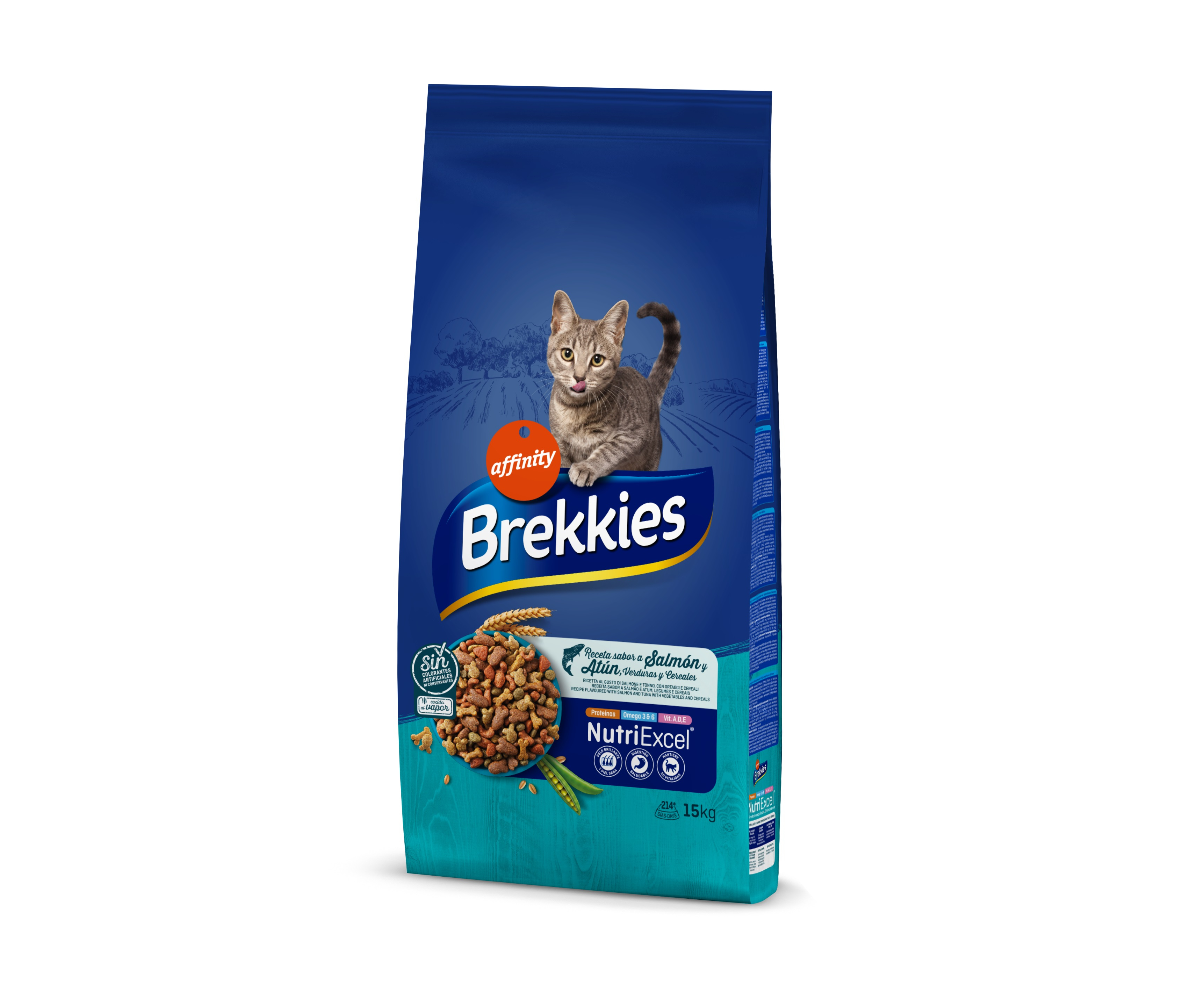 BREKKIES cat Salmon 15,0kg - pilnvērtīga sausā barība pieaugušiem kaķiem, ar lasi un tunci, dārzeņiem un graudaugiem.