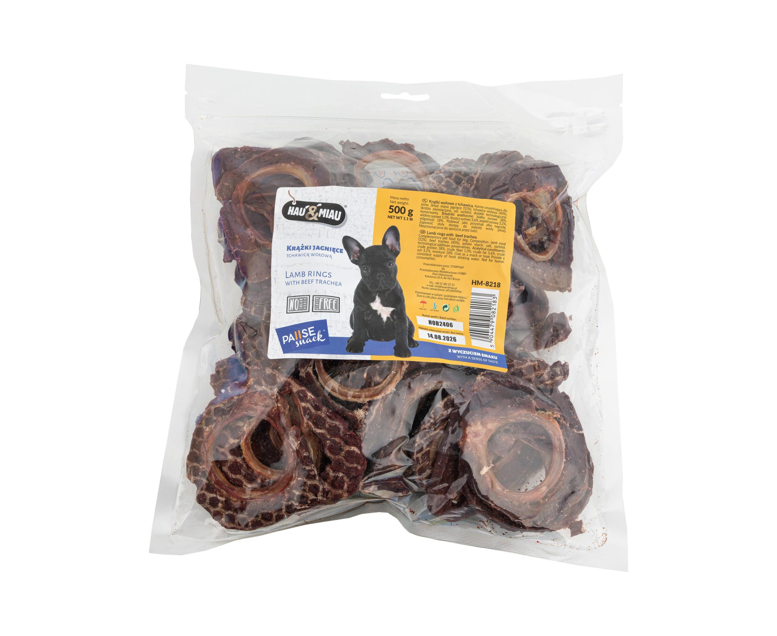 HAU & MIAU lamb rings with trachea 500g - papildbarība pieaugušiem suņiem, jēra gaļas riņķi ar traheju