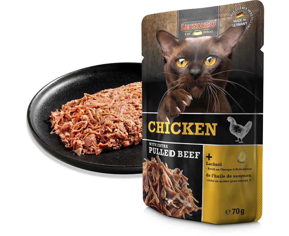 LEONARDO mitrā barība kaķiem ar vistu un plucinātu liellopu gaļu 70 g