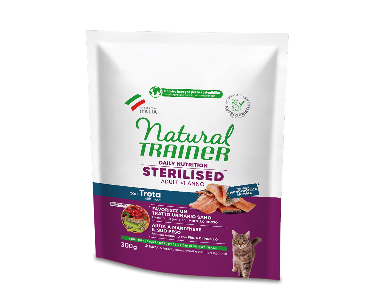 NATURAL TRAINER CAT ADULT STERILIZED WITH TROUT 300gr - PIEAUGUŠIEM STERILIZĒTIEM KAĶIEM, AR FORELI