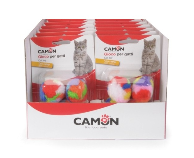 Rot. Kaķiem jauktas krāsas poliestera bumbiņas ar kaķumētru 3.5 cm