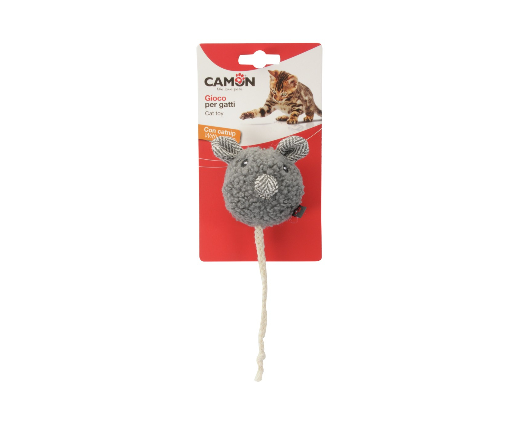 Rot. Kaķiem plīša peļes galva ar virves asti un kaķumētru 8 cm