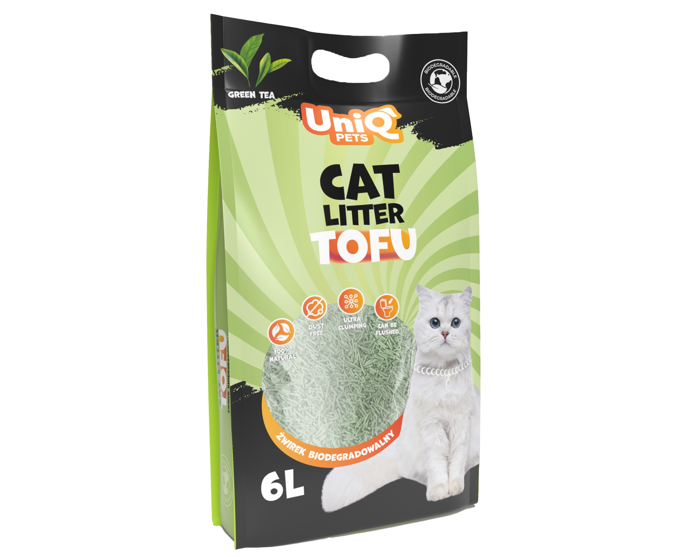 UNIQ Tofu Clumping Cat Litter Green tea 2,5kg / 6L - dabīgi granulēti kaķu pakaiši ar zaļo tēju maigu aromātu